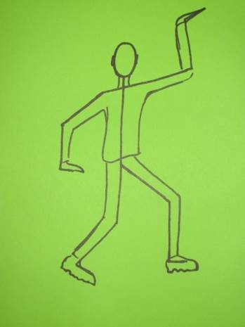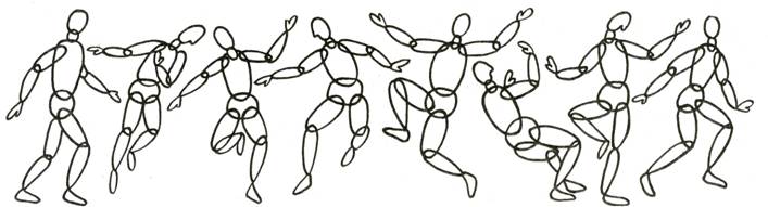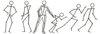2.Беседа. Вместе с детьми идет повторение пройденного материала (на предыдущих занятиях учащиеся знакомились с пропорциями фигуры человека и с созданием движения с помощью схем). (5 мин.)