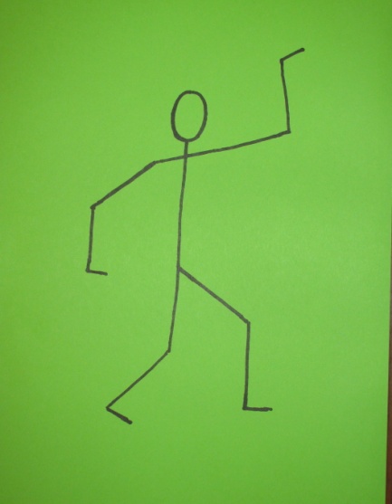 Я предлагаю один из уроков полностью посвятить упражнениям, позволяющим с помощью схем передать движение фигуры человека. В начале занятия детям даётся задание с помощью плоского или объёмного модуля создать нужное движение, а потом изобразить это движение на листе в виде схемы. Во второй половине урока дети выполняют то же упражнение, самостоятельно задавая движение. Подобные упражнения очень полезны для повышения навыков практической работы.