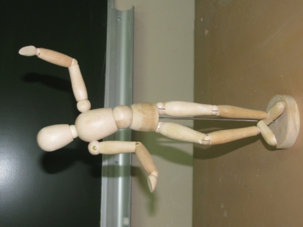 Для того чтобы учащиеся поняли как именно и где сгибается человеческое тело в качестве наглядного пособия следует использовать плоский подвижный модуль фигуры и объёмную подвижную модель фигуры человека. Плоский подвижный модуль фигуры позволяет учащимся выполнять тренировочные упражнения. Работая, с объёмной и подвижной моделью фигуры человека дети учатся создавать движение в пространстве. Также возможно использовать деревянную модель в качестве натуры при создании схематичных набросков.