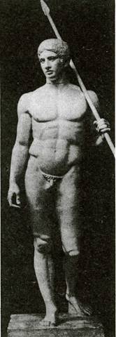 В Древней Греции систему идеальных пропорций человеческой фигуры создал скульптор Поликлет. Его теоретическое сочинение на эту тему называлось « Канон», а выражением в скульптуре этой системы явилась статуя « Дорифор», что означает копьеносец. Пропорции античных скульптур близки к данным анатомии и до сих пор считаются идеальными образцами в области скульптуры.